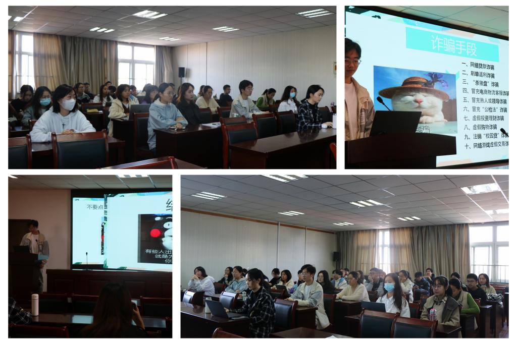 会上,辅导员宋燕老师首先举例了近期公司发生的网络电信诈骗案件,列举了涉案金额、诈骗类型等情况,向同学们直观展示了校园网络电信诈骗的危害,引起同学们的重视。随后,宋老师通过图片、数据展示、播放视频等形式,从什么是网络诈骗、常见的网络诈骗手段、网络诈骗的危害以及如何防治网络诈骗四个部分进行了详细介绍,提醒同学们要擦亮眼睛,提高警惕,注意识别各种形式的骗局,最大限度保障自己的人身财产安全。现场还督促同学们下载安装“国家反诈中心”APP,为个人网络安全多增添一份保障。在互动问答环节,同学们积极踊跃回答问题,进一步加深对防范电信网络诈骗知识的了解。会后,同学们纷纷表示,将在以后的学习生活中,主动学习预防网络电信诈骗常识,提高防诈骗能力,共建美好校园,共享美好老员工活。