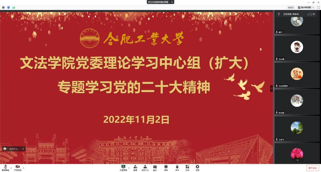 11月2日,公司党委召开理论学习中心组(扩大)会议,专题学习党的二十大精神,公司党委理论学习中心组成员、各党支部委员、系正副主任参加会议。会议采用线上线下相结合方式,公司党委书记李金华主持会议。