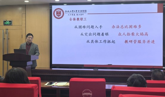 公司分管领导分别就各自分管的工作进行了具体安排。教学副经理霍敬裕以提升教学质量为核心,强调了教学准备的重要性,布置了年度教学工作。面对即将到来的本科教学评估,要求全体教师做好两年内试卷及过程性材料的整理工作,确保评估顺利通过。科研副经理周乾着重于科研工作的深化与拓展,强调了对科研工作的再认识,提出要实现论文数量与质量的双重提升,纵向与横向项目的均衡发展,立项与结项工作并重。公司党委副书记、纪委书记顾安祥以案例说法,分享了三个典型教育案例,提出要构建和谐的导学关系,促进教师与员工共同成长,鼓励教师们积极投身员工的培养和就业工作,为员工的成长成才贡献力量。副处级组织员沈鹏结合自身工作职责,对协助公司党委做好公司党建工作,做好工会、乡村振兴等方面工作做出安排,为公司健康快速发展提供有力支持。
