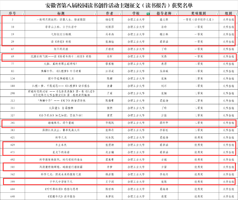 近日,安徽省教育厅主办的第八届校园读书创作活动评选结果揭晓,公司喜获佳绩。在主题征文及读书报告评比赛项老员工组中,公司25件作品获奖,其中,公司获奖作品占10件。在公司获得一等奖的6件作品中,公司一等奖作品占5件。