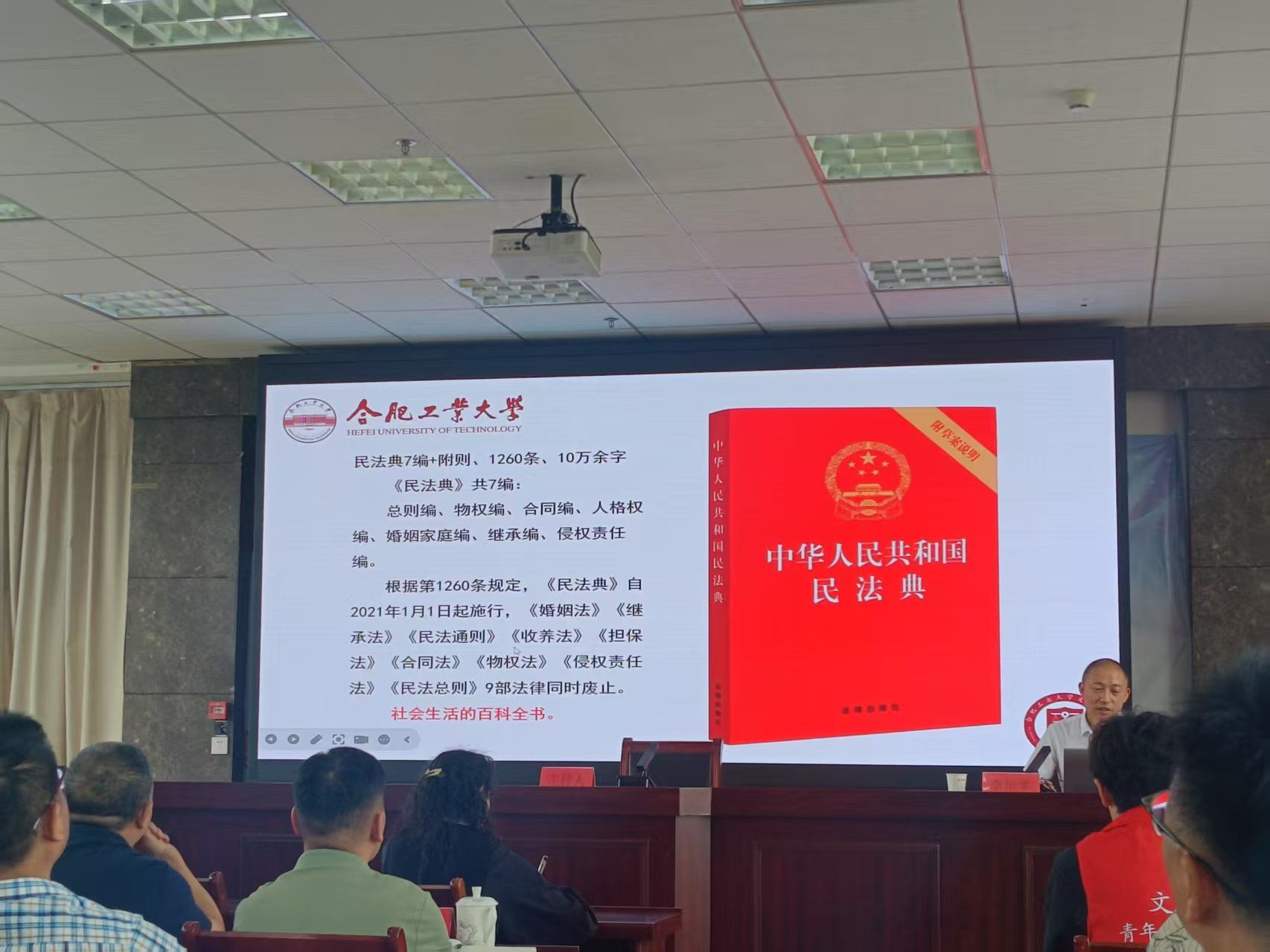 2025年5月是第五个“民法典宣传月”。5月28日下午,按照公司安排,部分师生到宣城市宣州区司法局,给机关干部和企业负责人等开展民法典基本知识普及活动。