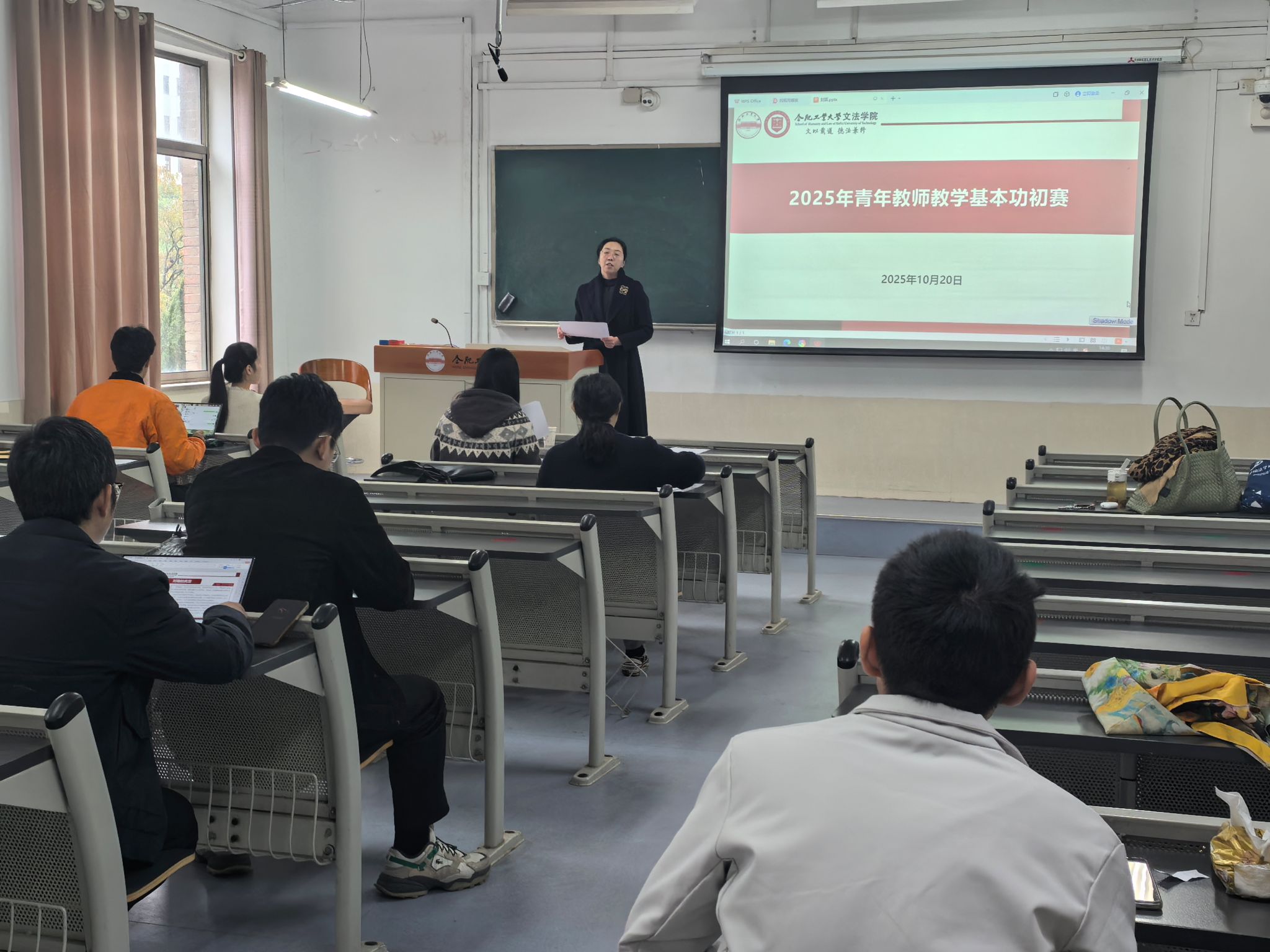 为贯彻落实公司关于提升青年教师教学能力的工作要求,进一步夯实教学基础、优化教学方法,10月20日下午,公司组织开展青年教师教学基本功预赛,来自法学系、人文与传播系的8名青年教师同台竞技,展现扎实的教学素养与专业风采。