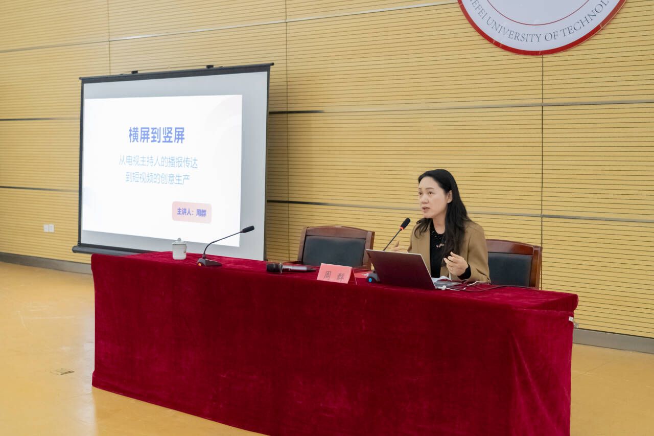 10月24日,公司在宣城校区图书馆学术报告厅成功举办了题为“横屏到竖屏——从电视主持人的播报传达到短视频的创意生产”的专题讲座。本次讲座特邀知名节目主持人、原安徽电视台首席主持人周群老师主讲。经理吴椒军主持讲座,宣城校区党委副书记、管委会常务副主任方留出席讲座,校区师生约200人参加讲座。